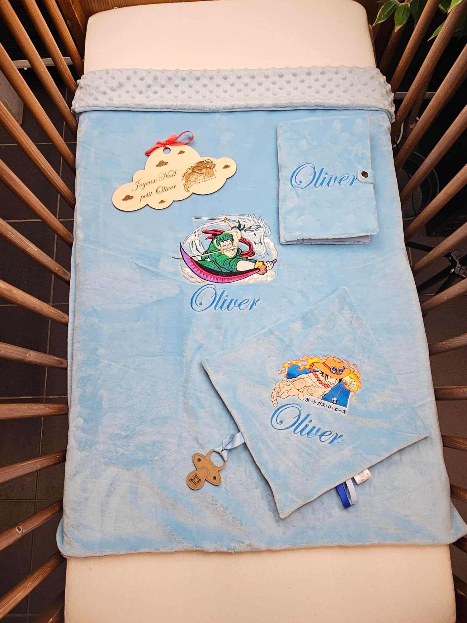 - Un couverture bébé 75cm x 100cm (personnalisable)