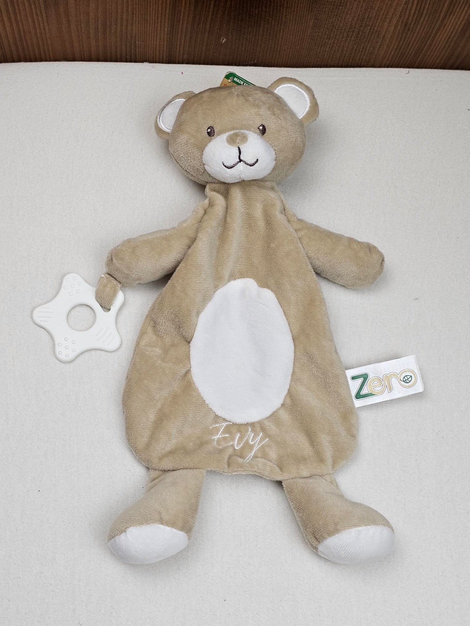 Doudou Ourson 28cm Brun Avec Anneau de Dentition | Prénom Brodé