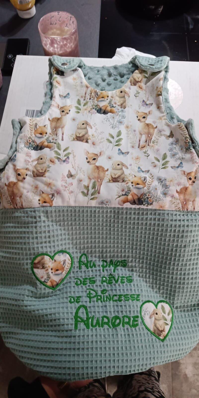 - Personnalisation du nom du bébé en broderie avec message personnalisé