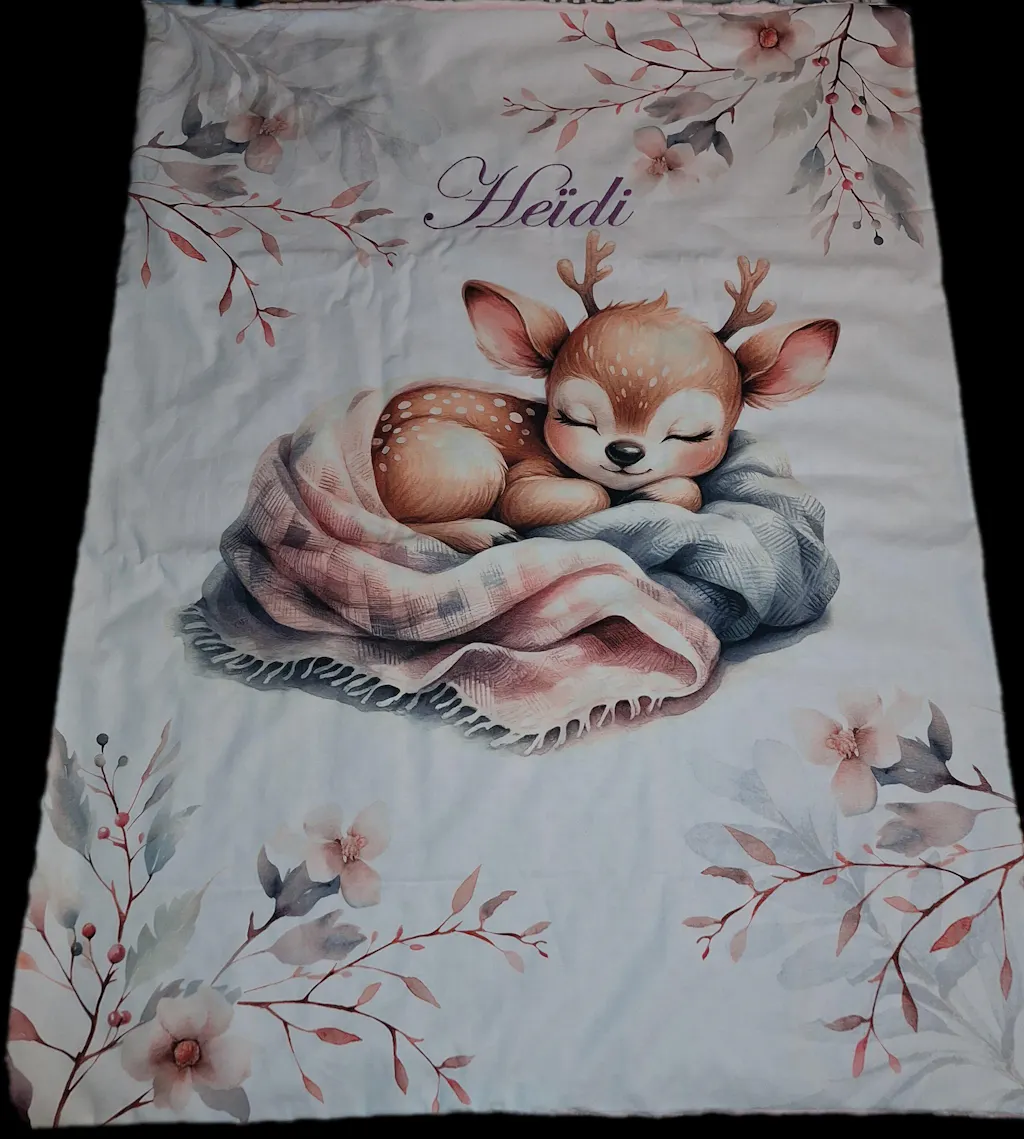 Couverture Plaid Bébé | Biche Rose Endormie | 70cm x 95cm | A Personnaliser