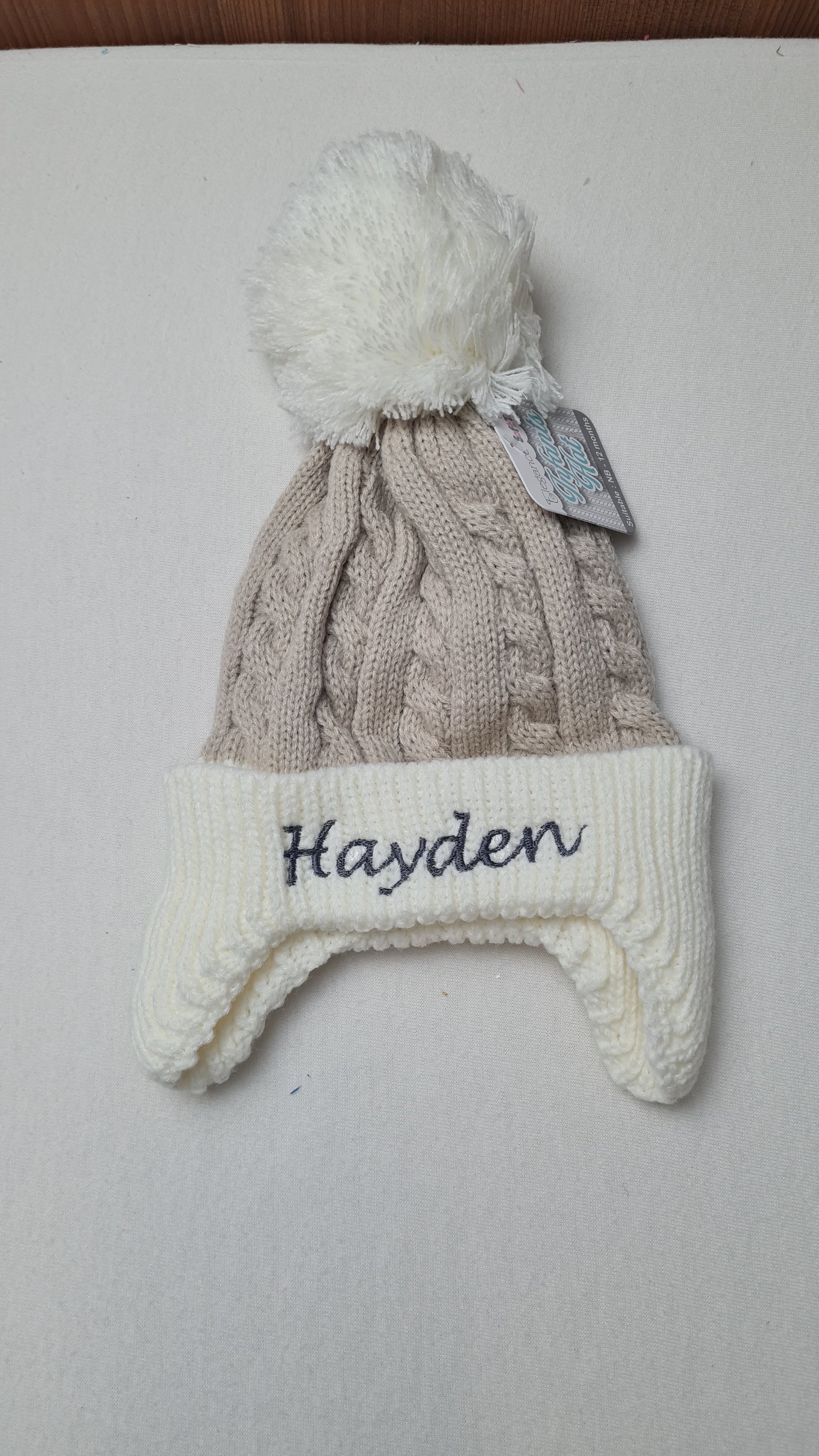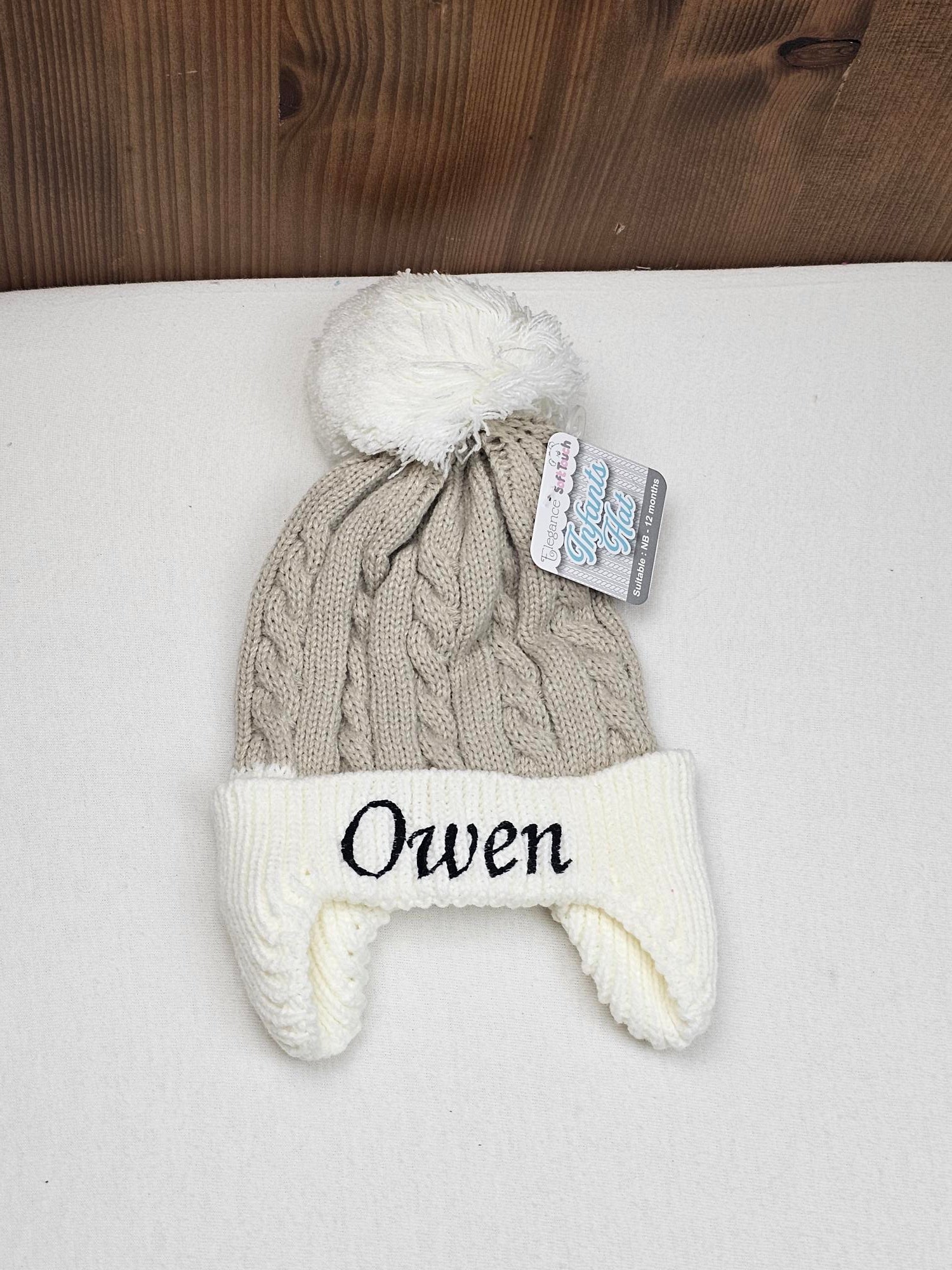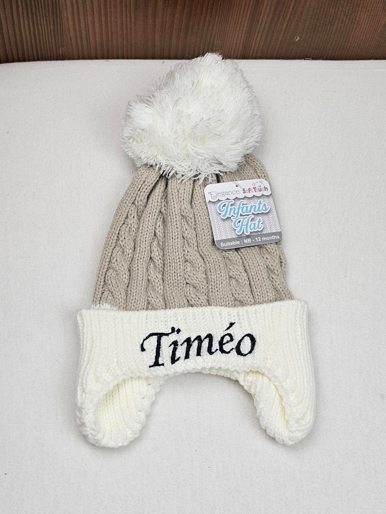 Bonnet Pompon Couvre Oreilles Café | 0 à 12 mois | Avec Prénom Brodé