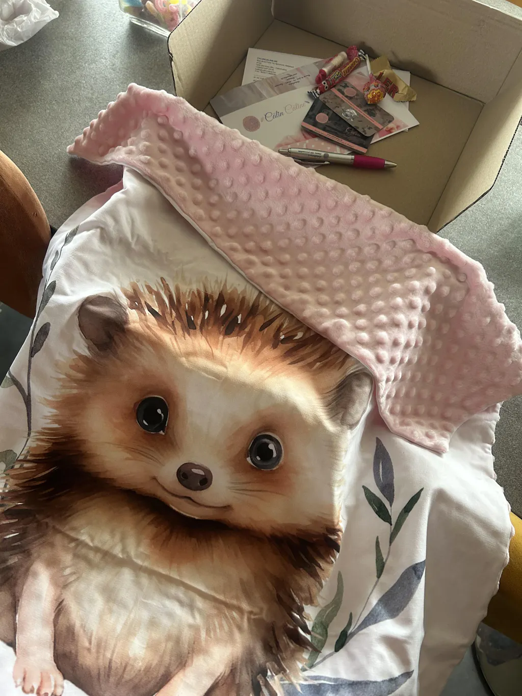 Couverture Plaid Hérisson Forêt | 70cm x 95cm | Couleur minky au choix
