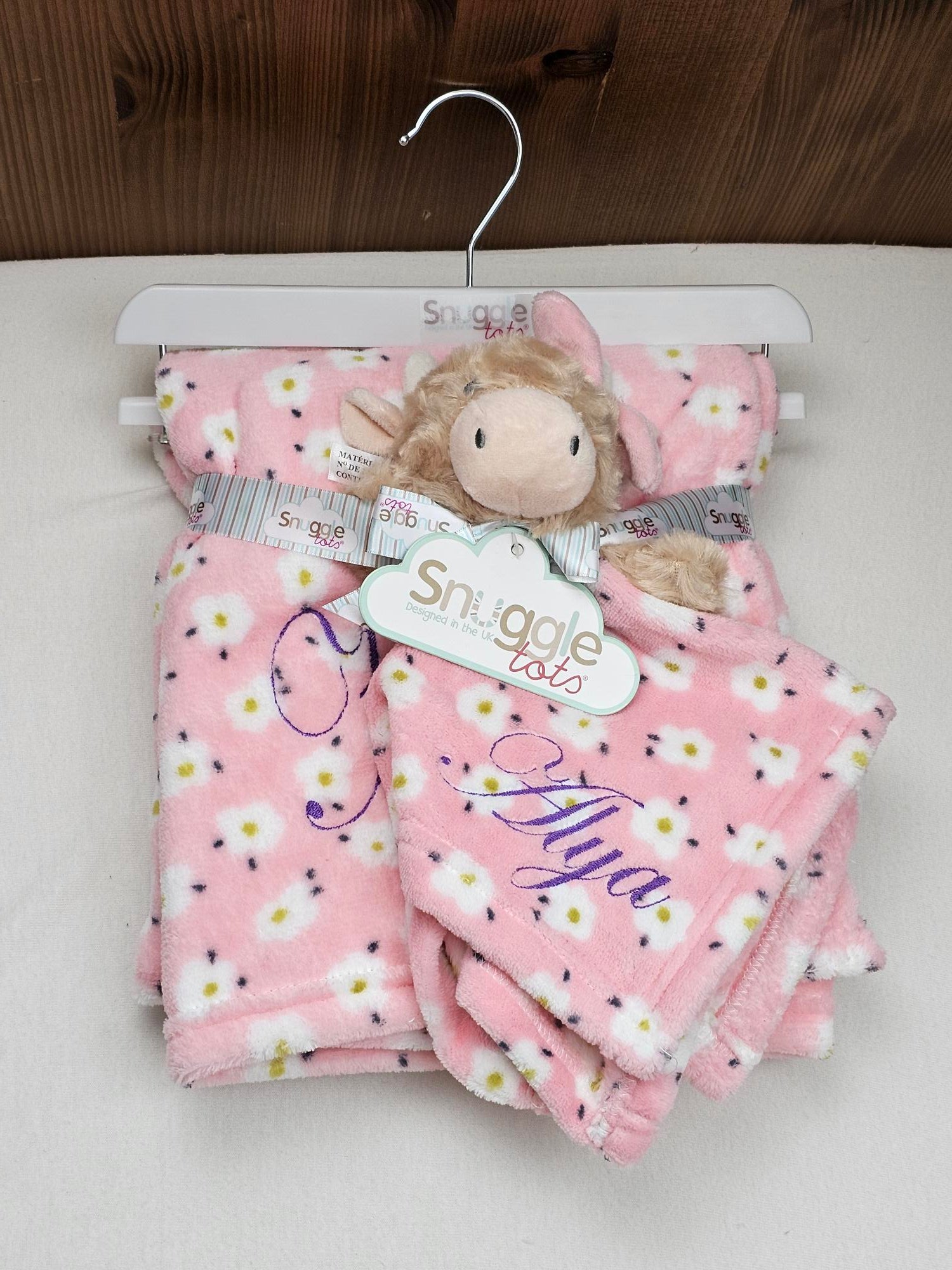 Pack Bébé A Personnaliser | Couverture Eté Rose 75cm x 90cm + Doudou Vache 35cm