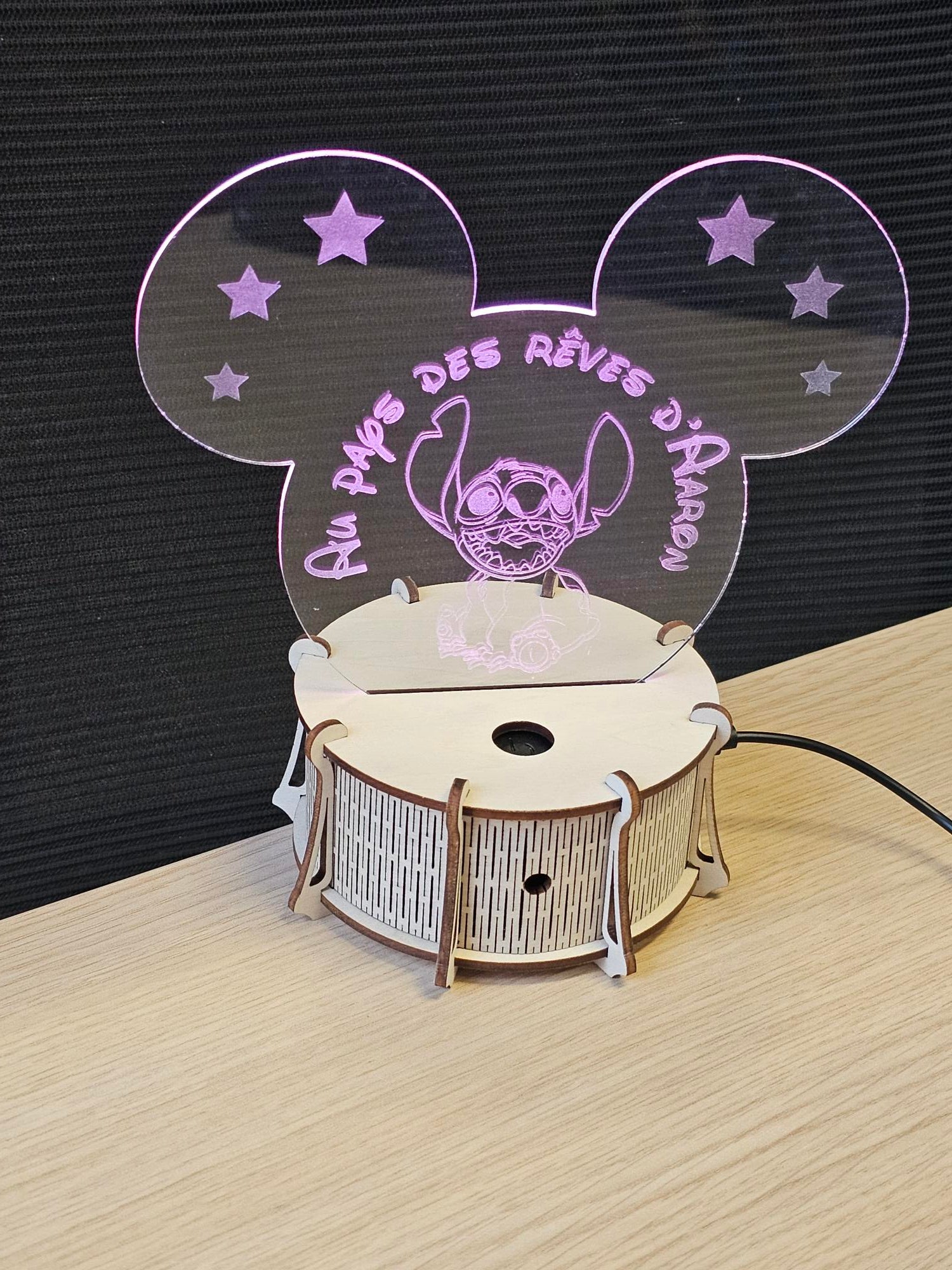 Veilleuse LED 15cm Personnalisée | Tête Mickey | Avec prénom et personnage